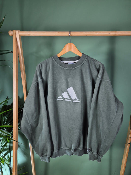Vintage 90s adidas logo sweater maat L